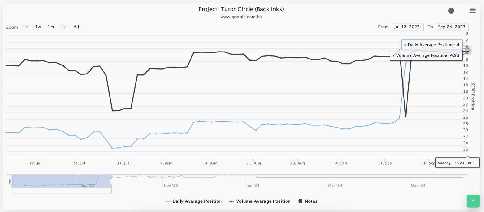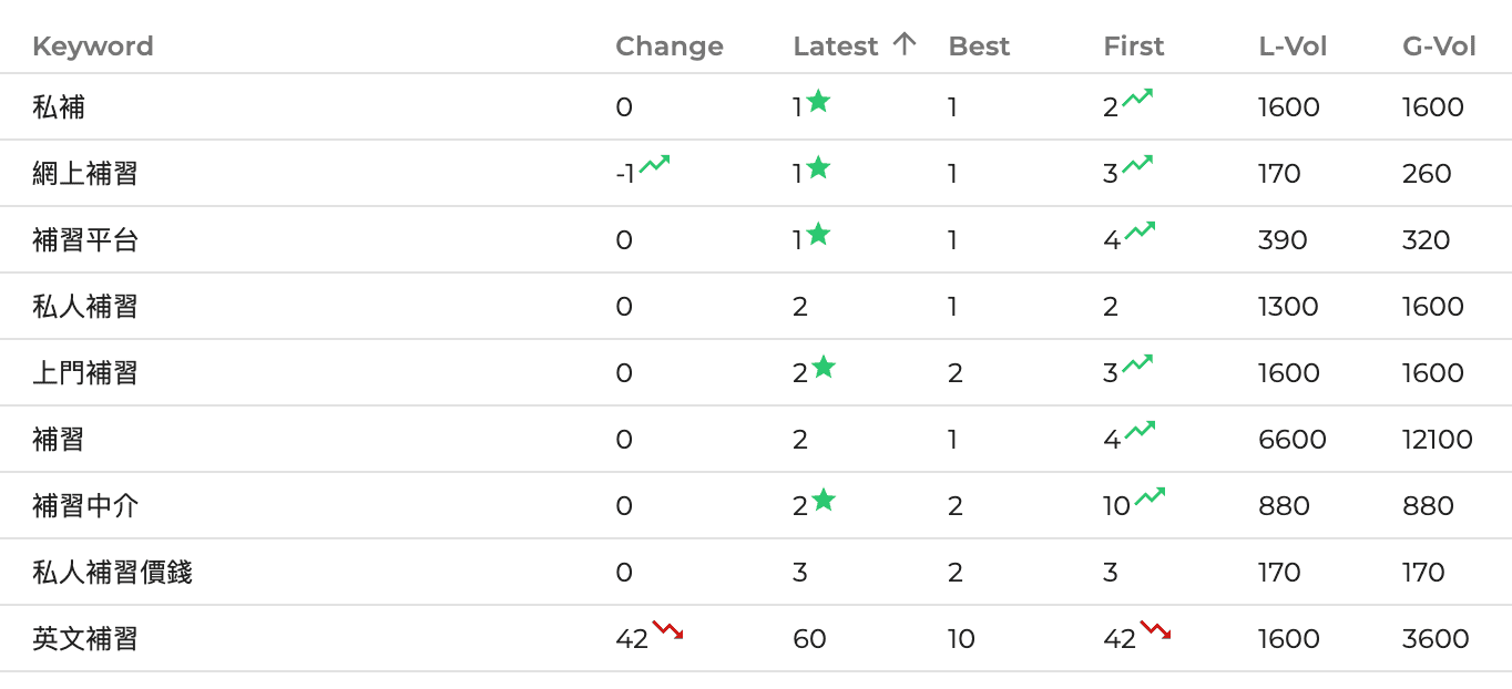 The data for the above two images comes from the ranking tracking tool “Serprobot”, showing an upward trend in keyword rankings in Tutor Circle SEO Project.